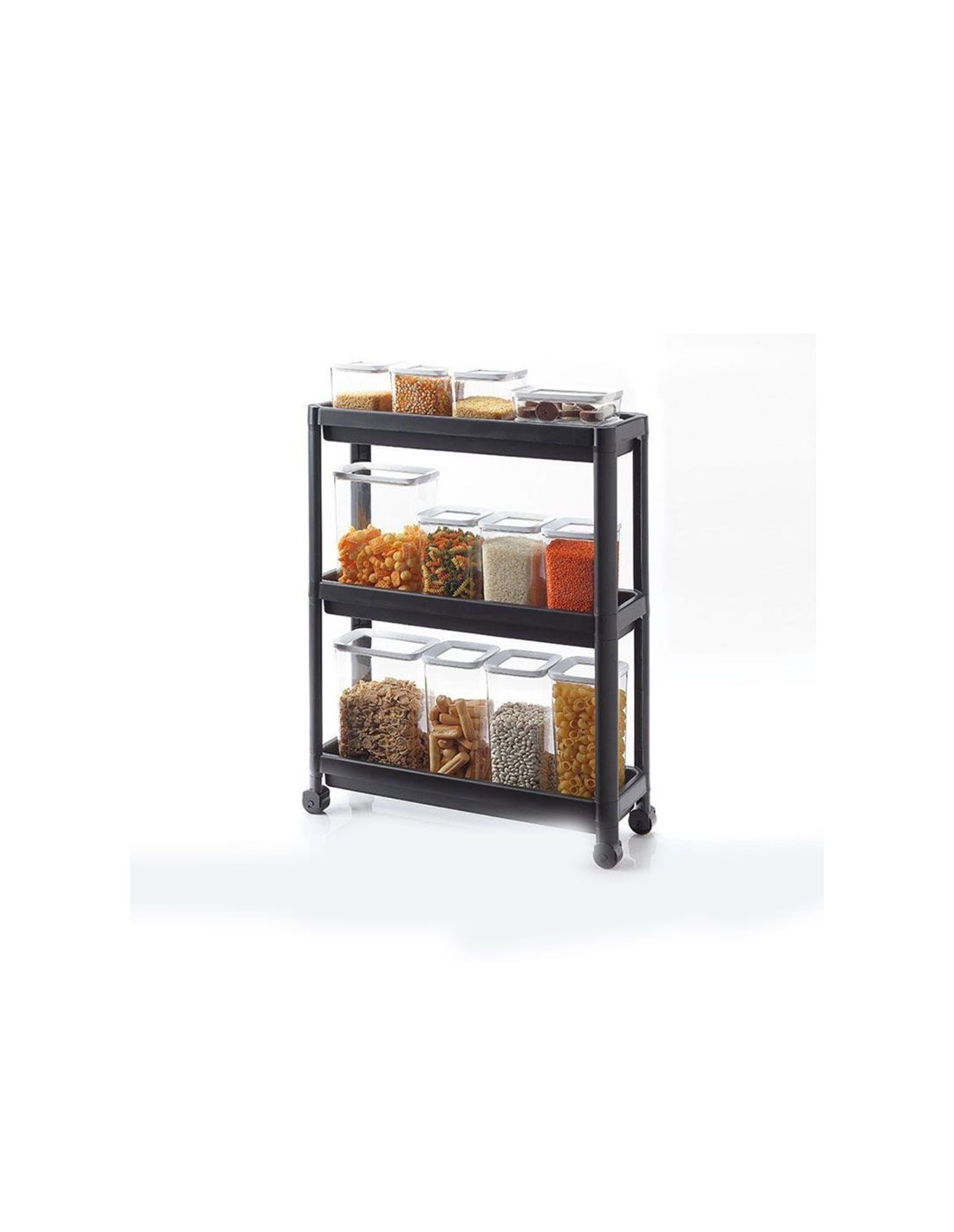 Meuble de rangement sur trois niveaux, utilisé comme armoire de cuisine ou de salle de bain, chariot de stockage, meuble de rangement à roulettes ou simplement comme étagère de cuisine.