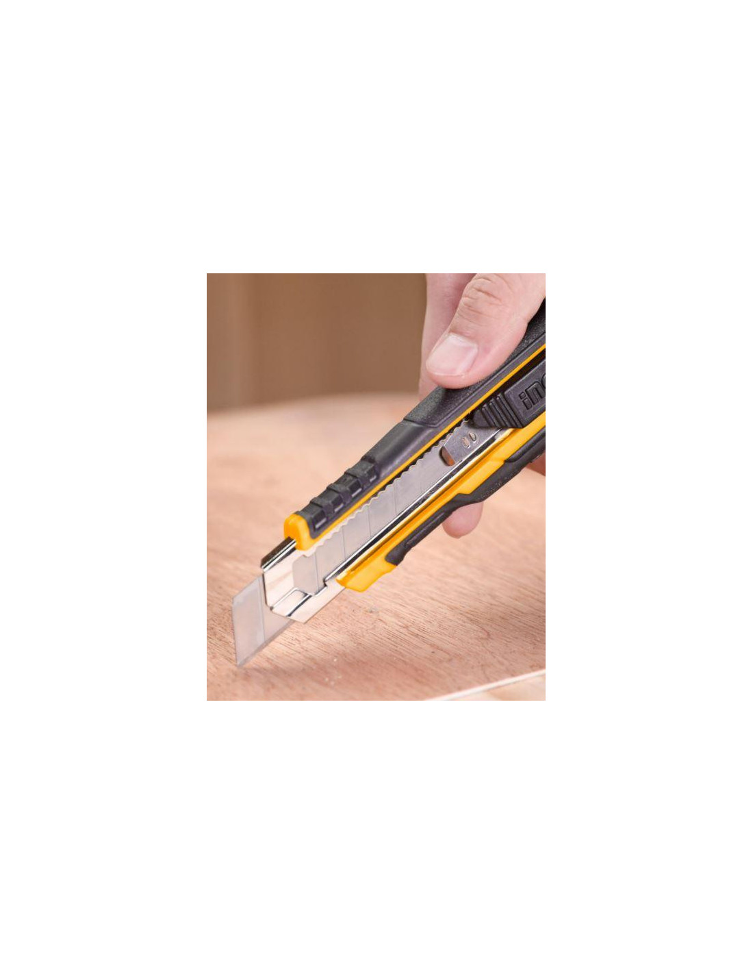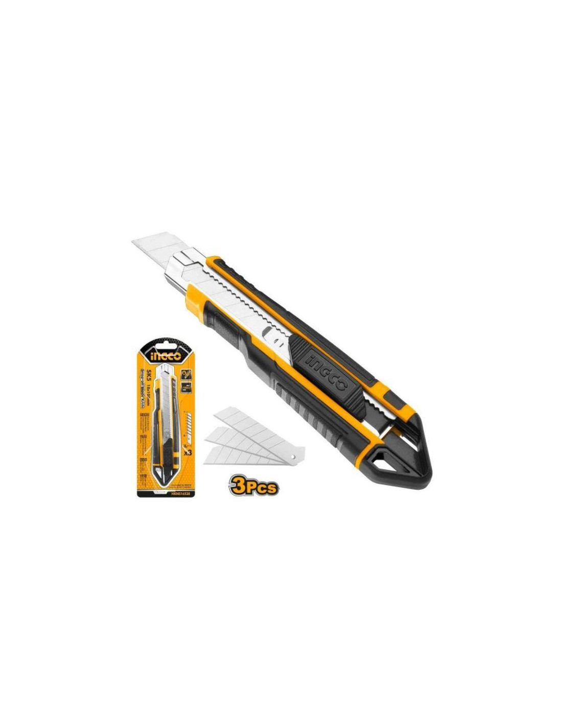 Le cutter INGCO HKNS16538 possède 3 lames pour un usage longue durée et un bouton poussoir. Dès que la lame s'abime il est possible de retirer avec précaution le segment supérieur à l aide d' une pince afin de retrouver une lame bien pointue et bien aiguisée. Ce cutter permet d'effectuer une coupe nette et précise sur divers type de surface.