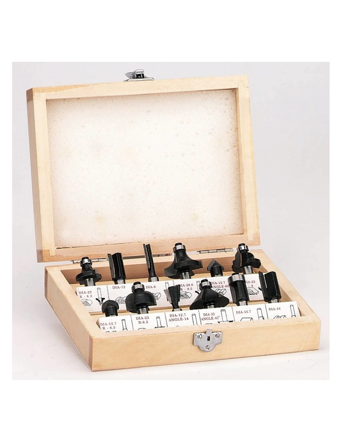 Accessoires pour Défonceuse : Jeu de fraisage 12 pièces dans un coffret en bois